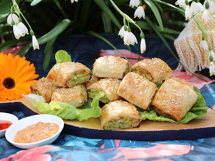 Cheesy trout sausage rolls