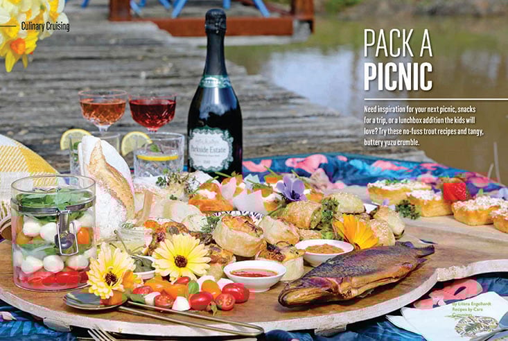 Cara Cummings supplied a fabulous picnic spread based on smoked and fresh trout for the Culinary Cruising feature in the Vol 37.5 October-November 2022 Club Marine Magazine.