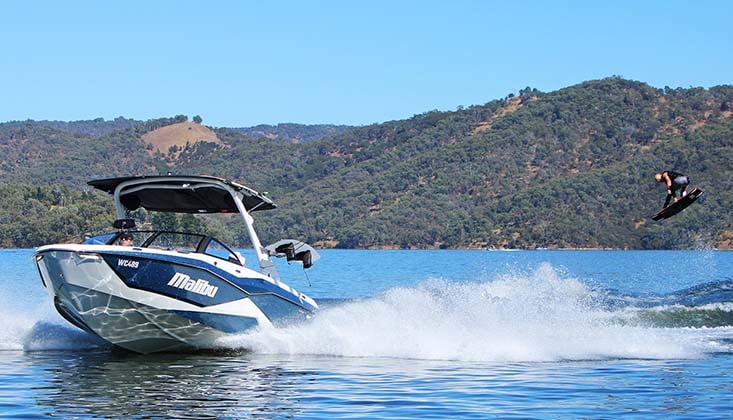 Malibu offers two hull designs: Wake Plus for enhanced wake performance (featured on our test boat), and Diamond Multi Sport Hull for better all-round performance with slalom wakes.