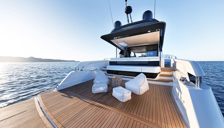 The company previously offered a 70-footer (2017-2021), so it wasn’t a giant step in length but more a leap in sophistication. As an example, the S70’s coachroof had a long overhang whereas the S75 offers a large Aussie-style adventure deck, along with an optional hydraulic boarding platform.