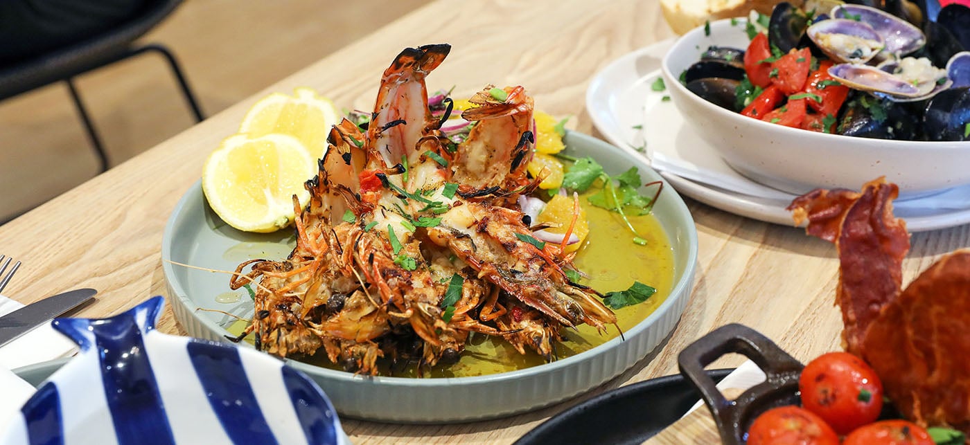 Discover the delightful flavours of The Larder Kitchen's grilled king prawn recipe. Featuring juicy prawns cooked in chilli butter, paired with a refreshing orange salad and finished with a sweet and spicy chilli honey drizzle.