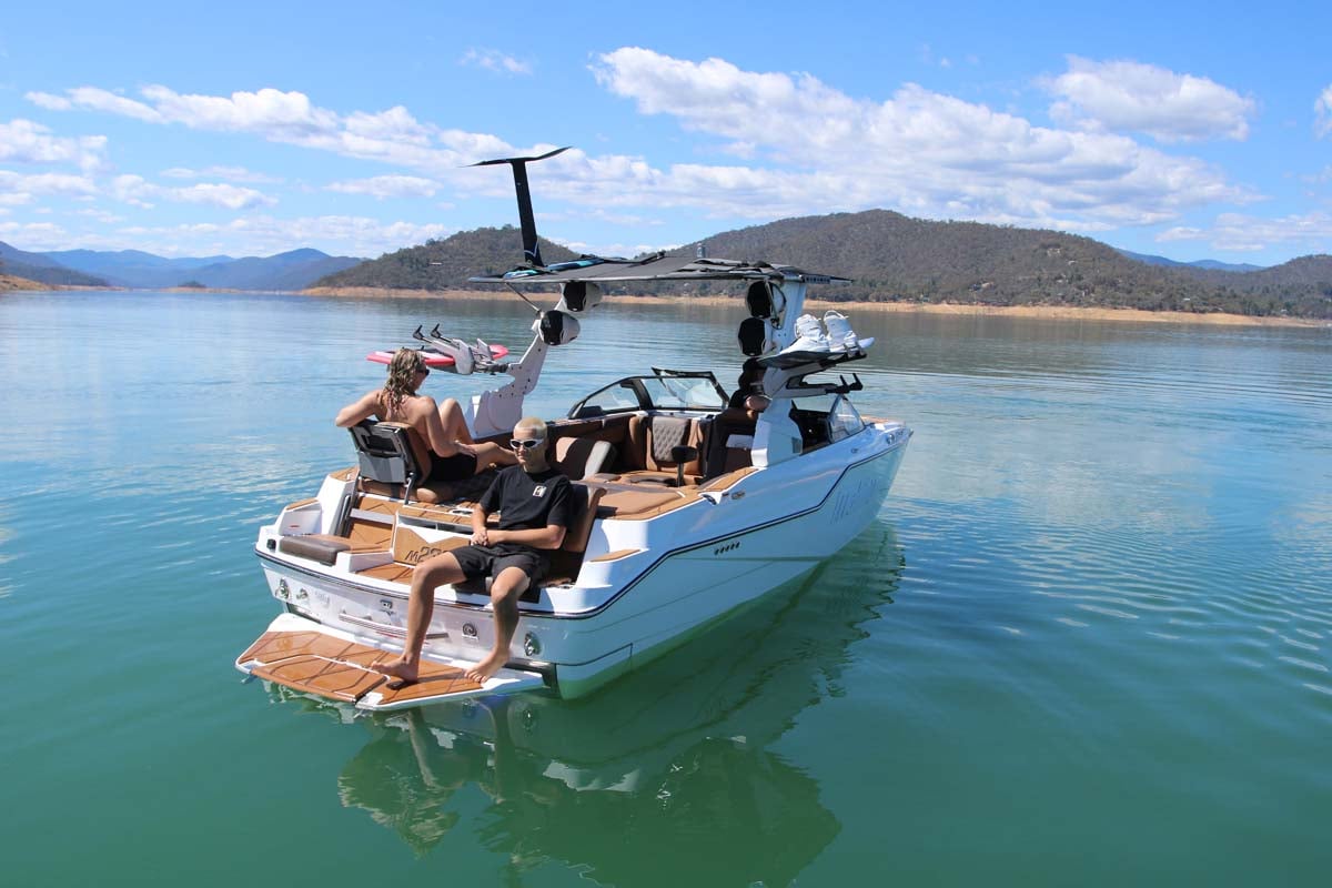 Stepping aboard the M230, the newest M-Series Malibu boat to reach Australian shores, the feeling of spaciousness is impressive. At 7.01m (23ft) with a 2.59m beam, this is a long, wide and deep hull with high freeboard, ample room to move about, and loads of seating.