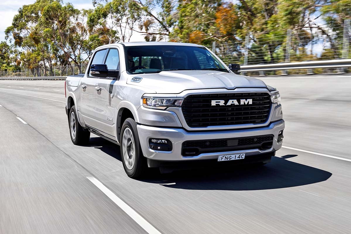 The Laramie Sport gets a slightly softer engine tune for peaks of 313kW and 630Nm which, when combined with all-wheel-drive, an eight-speed automatic, and that brawny body and chassis, gives the RAM a 4.5-tonnne towing limit. Priced from $141,950.