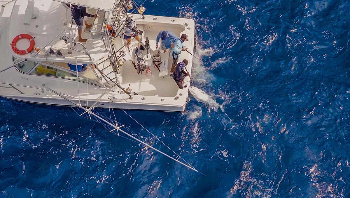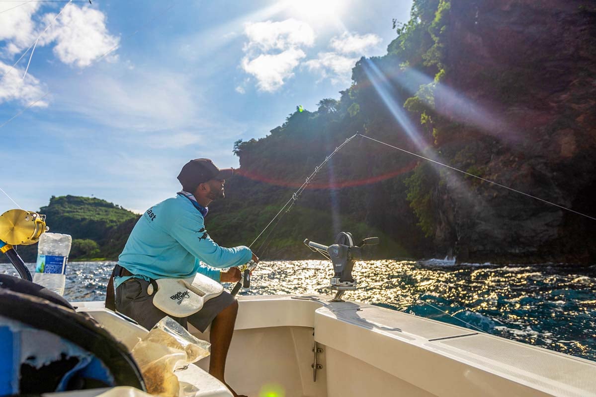 The water in Vanuatu is incredibly deep between the islands which disrupts the current, turning it into prime blue marlin terrain. To chase them, we didn’t need any high-speed running between spots, we simply set a spread of lures and troll.