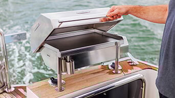 There’s also a redesigned forward console seat that lifts to reveal additional storage, which is large enough for a lifejacket stash, tackle trays or safety gear. Under the aft deck are twin storage hatches – one can be configured as a livebait tank or dry storage, depending on your preference.