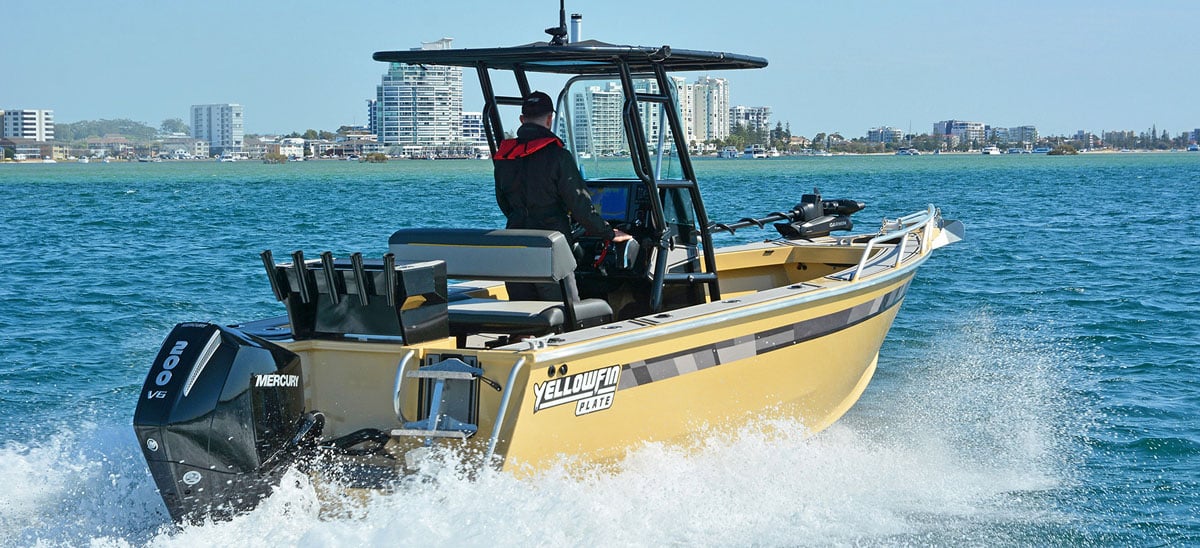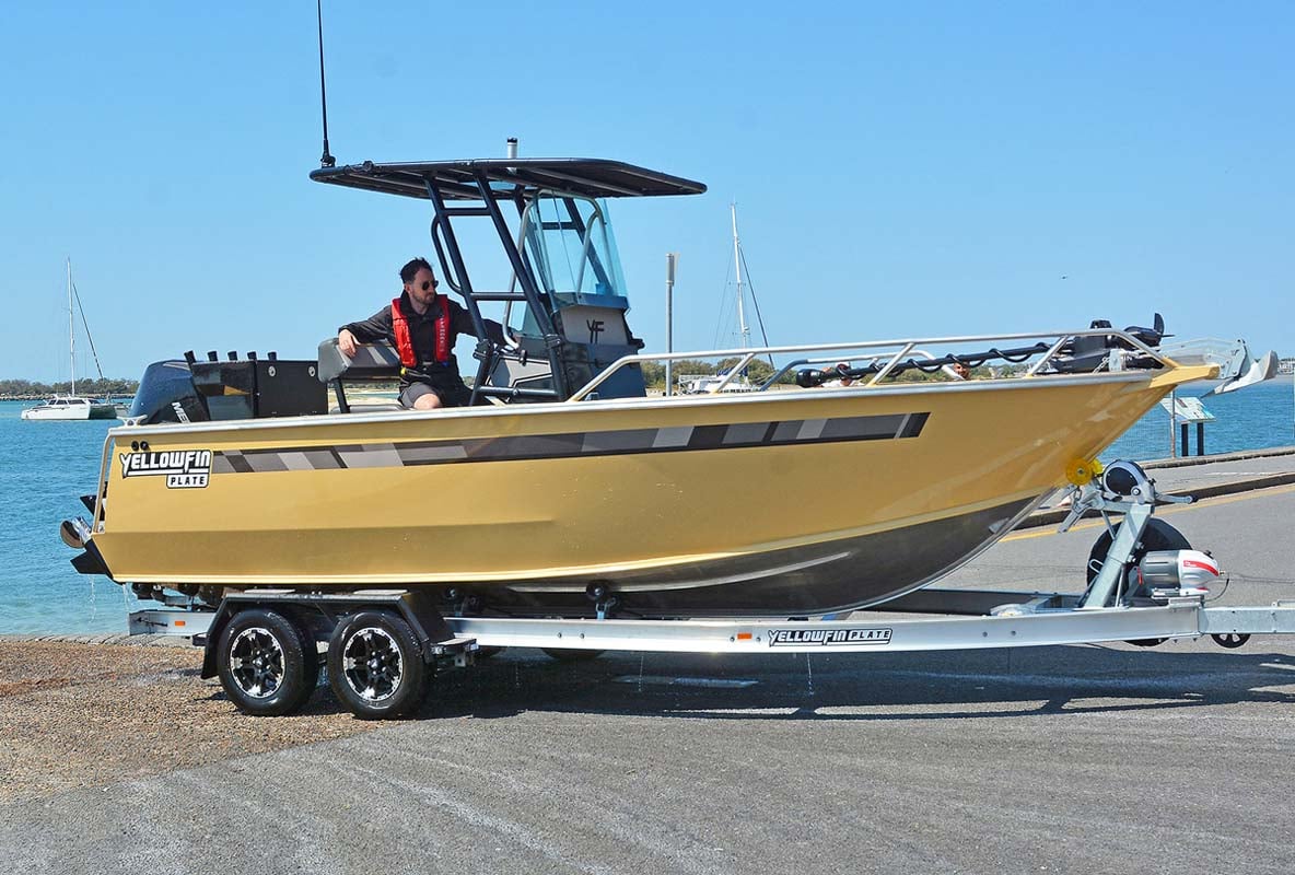 A first-class open boat for coastal offshore fishing, the basic model Yellowfin YF-66 Centre Console comes in standard white, with a 175hp Mercury outboard, on a Yellowfin braked tandem-axle aluminium trailer for less than $114k.