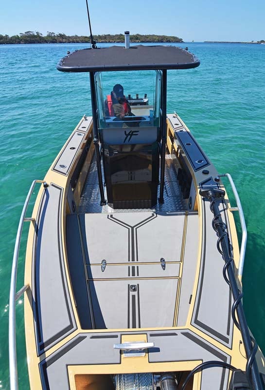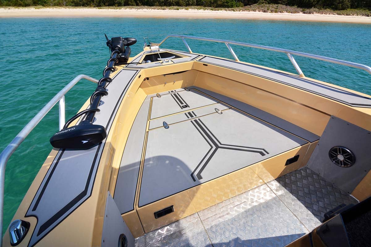 Yellowfin Plate Boats has added U-Dek foam rubber underfoot for better grip, as well as on the 330mm-wide coamings. There’s a large bow anchorwell, and space for an optional Garmin bow-mount electric trolling motor.