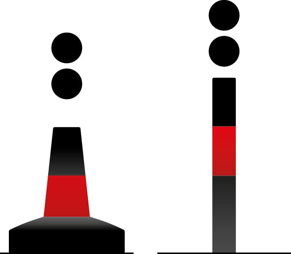 These marks are easy to understand as they’re always placed or moored above an isolated danger that has navigable water all around it.They don’t have a distinctive shape but are usually a pillar or spar, and will always be black with one or more horizontal red bands and a top mark of two vertical black spheres.