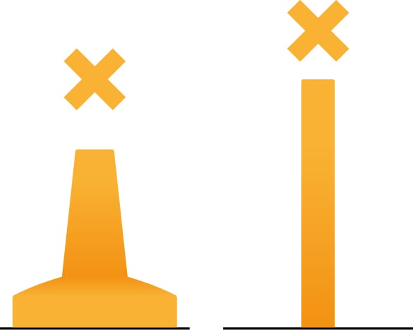 Special marks are always yellow, but their actual buoy shape can vary, including cans, cones or spherical shapes, according to their purpose. The top mark is always a three-dimensional yellow St Andrews Cross shape … an X.