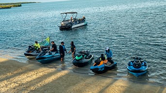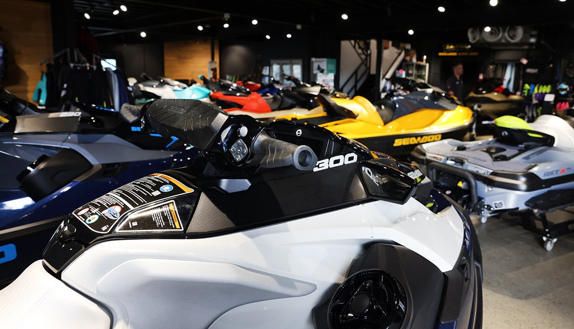 Among the brands you’ll find hydraulic steering dampening, adjustable handlebar heights, debris-removal technology, rearview cameras, electronic trim, audio systems with waterproof speakers, touchscreen dashes, fishfinder/GPS screens, footwell drains, app connectivity, throttle control, different engine modes, cruise control, neutral and more.