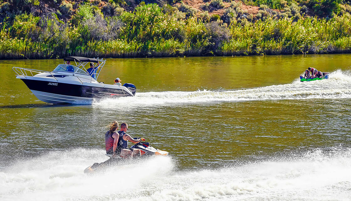 It’s also important to understand the potential hazards of busy rivers, such as rough water from boat wakes, inappropriate speeds, boats undertaking power turns to pick up riders and skiers and keeping clear of objects in the water.